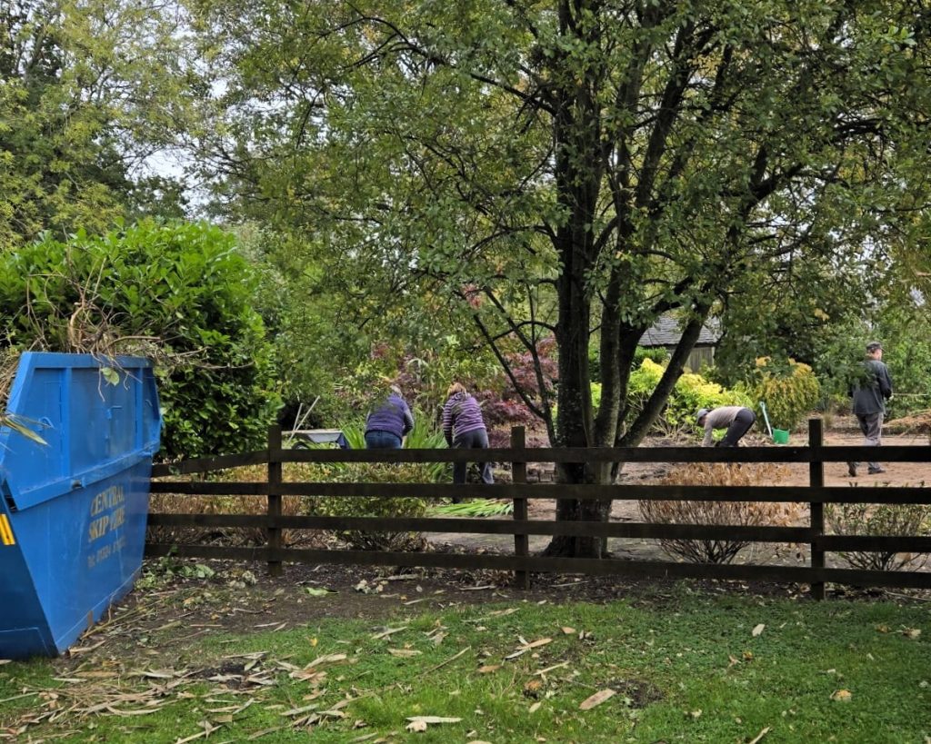 The bamboo got out of control over the last couple of years, popping up in places it was never intended to go! Removing it has involved machinery and a lot of back-breaking work to pull out the roots. This was achieved over several big pushes from villagers this year to get on top of garden maintenance and resulted in two skips being filled.